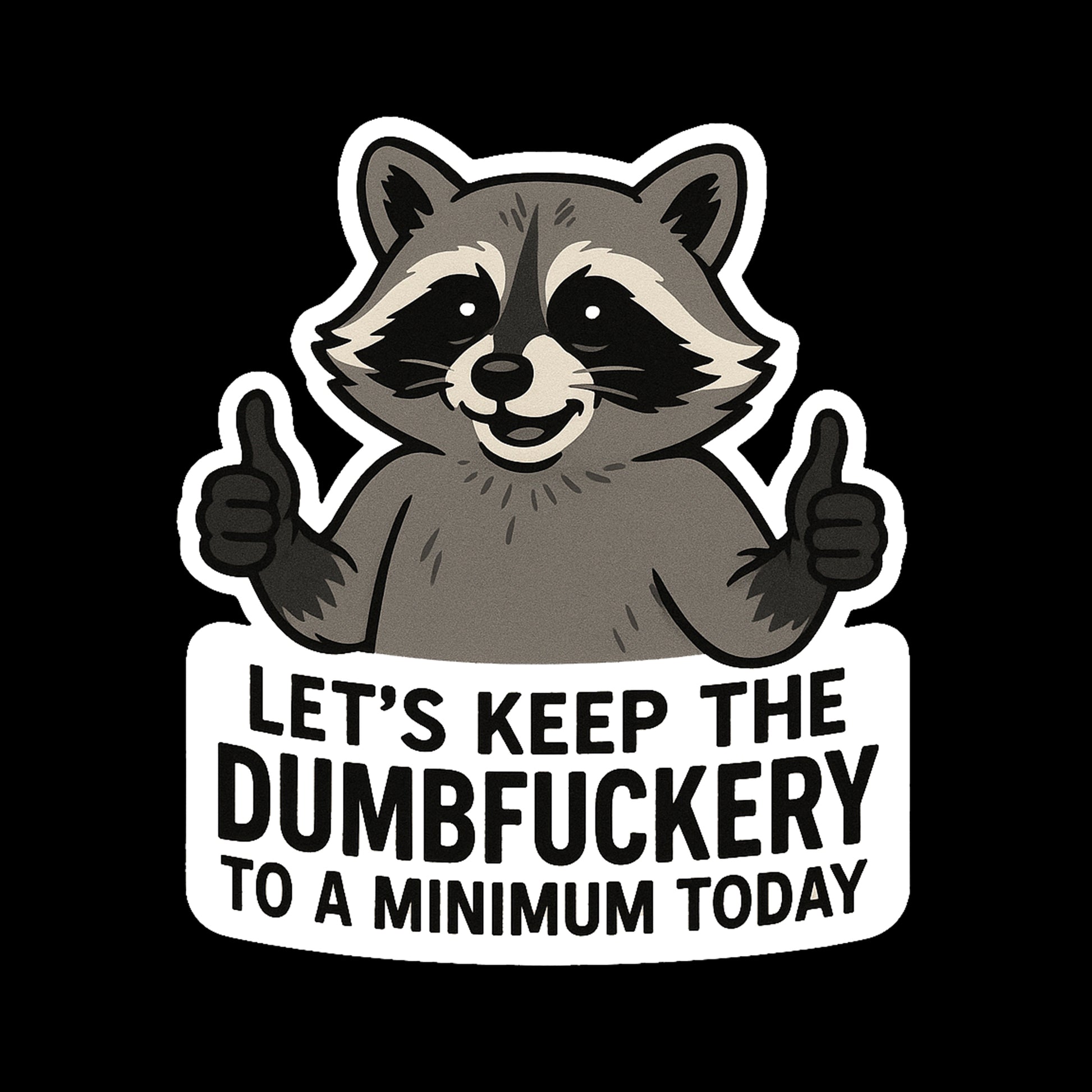 This 4.5" x 5.25" die-cut sticker delivers a daily dose of truth with a wink, a smirk, and an adorable friend. Featuring the timeless mantra: “Let’s keep the dumbfuckery to a minimum today” — it’s perfect for laptops, water bottles, office desks, or anywhere the nonsense tends to pile up.